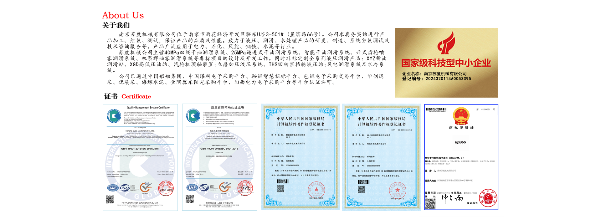 南京蘇度機械有限公司位于南京市雨花經(jīng)濟開發(fā)區(qū)聯(lián)東U谷3-502# (星濱路66號)。得益于南京以及長三角地區(qū)的潤滑產(chǎn)業(yè)集群優(yōu)勢資源,公司求真務(wù)實的進(jìn)行產(chǎn)品加工、組裝、測試,保證產(chǎn)品的品質(zhì)及性能。致力于液壓、潤滑、水處理產(chǎn)品的研發(fā)、制造、系統(tǒng)安裝調(diào)試及技術(shù)咨詢服務(wù)等。產(chǎn)品廣泛應(yīng)用于電力、石化、風(fēng)能、鋼鐵、水泥等行業(yè),長期與國內(nèi)大型的重機企業(yè)及設(shè)計院合作,潤滑系統(tǒng)隨主機設(shè)備出口至東南亞、...